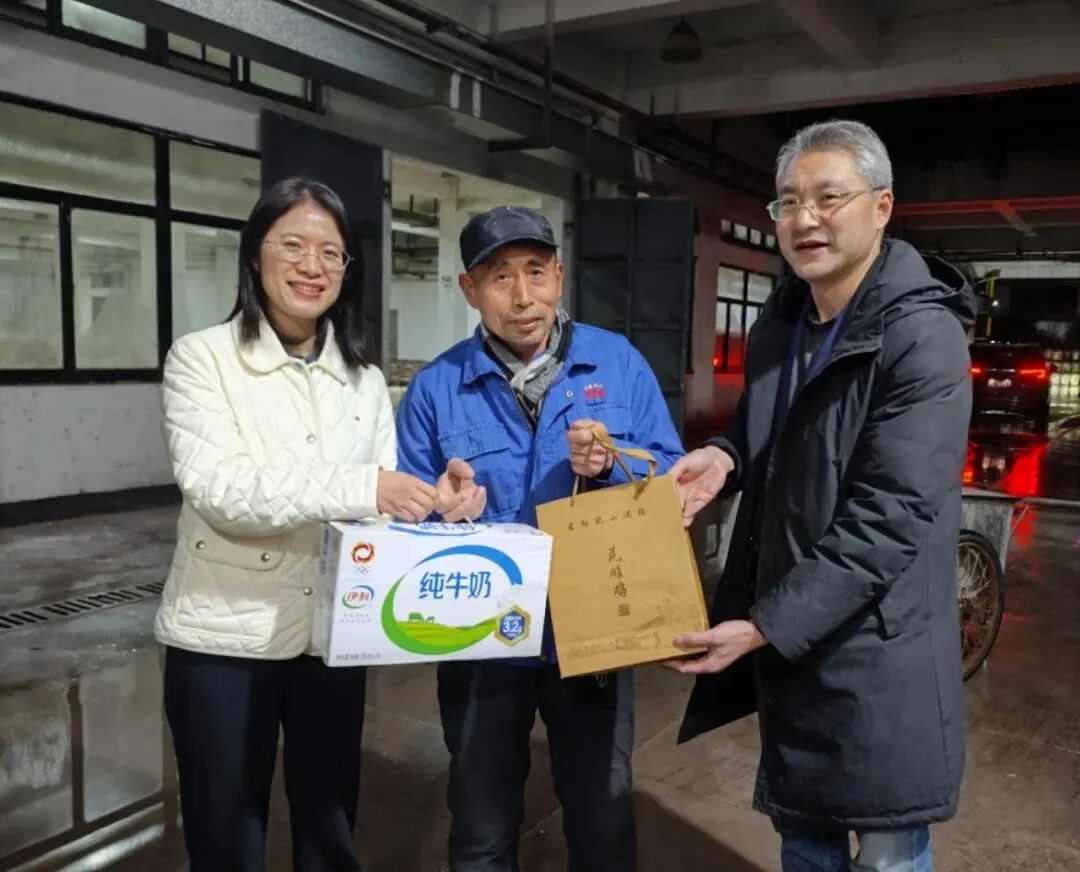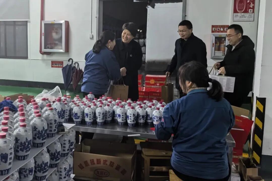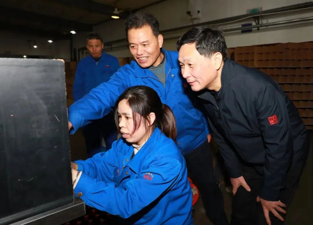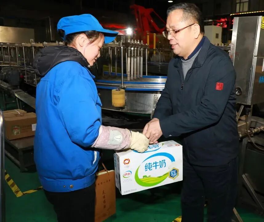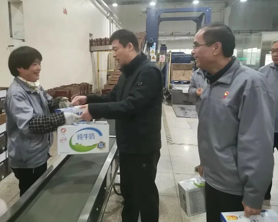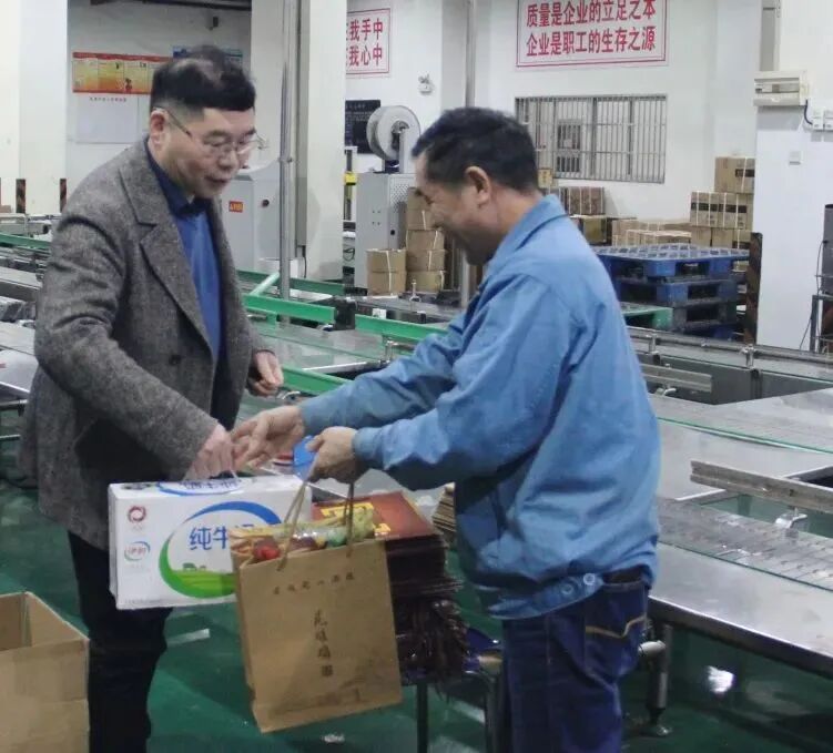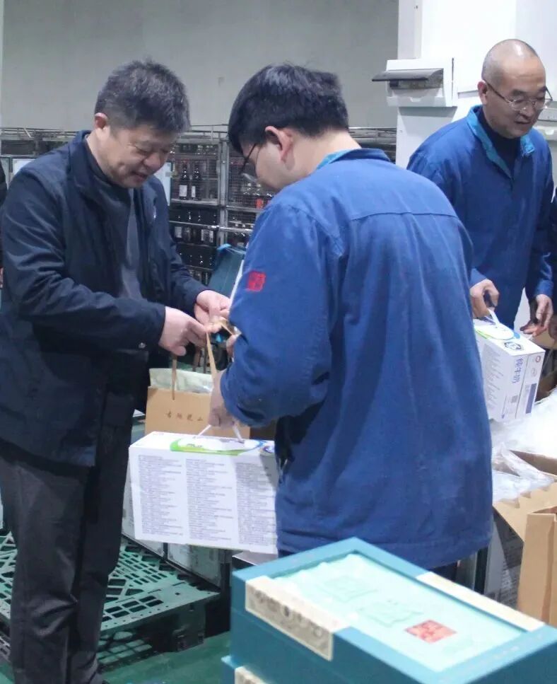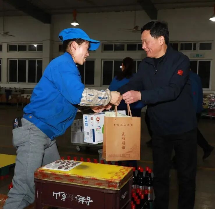 公司领导孙爱保慰问沈永和酒厂的一线员工,为他们送上节日祝福和慰问品。
