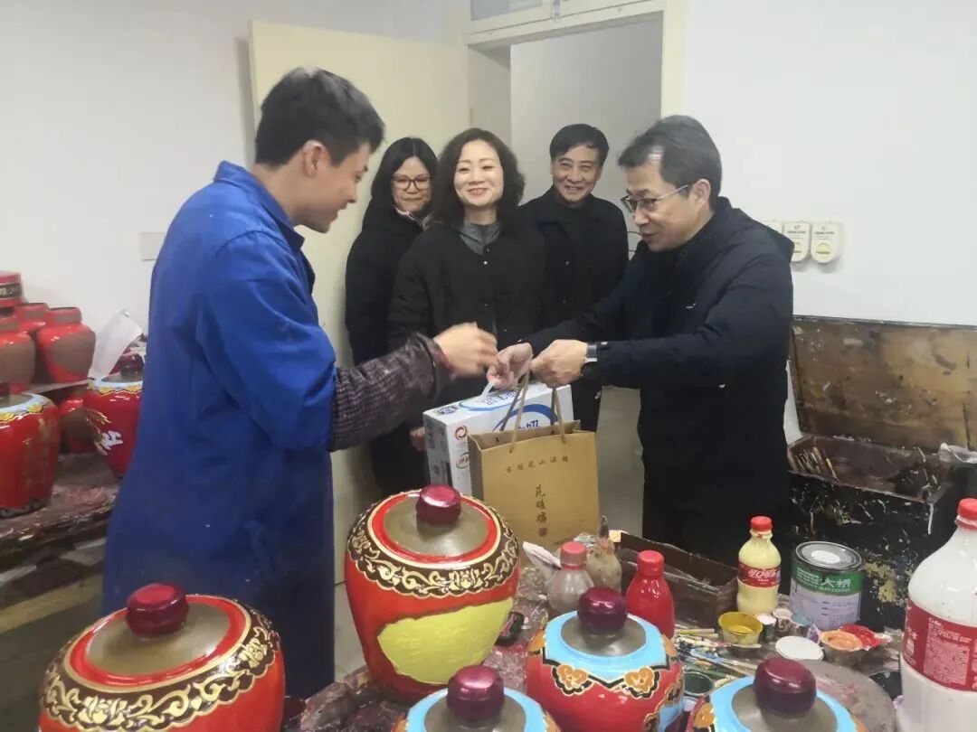 公司领导杨文龙、柏宏、吕旦霖、李维萍、刘剑、徐岳正、万龙赴工艺浮雕厂、古越龙山酒厂、酿酒一厂、鉴湖酒厂、生产物流仓库慰问一线员工,为他们送上慰问品和节日问候。