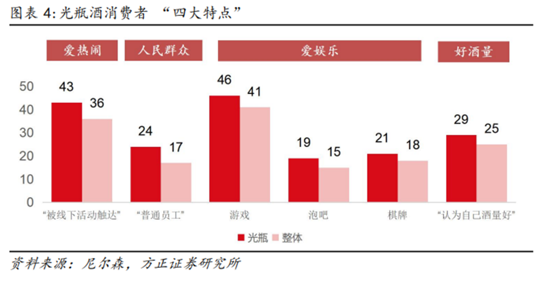 从消费场景看,光瓶酒以自饮为主、亲朋聚饮为辅,相比低端盒装酒、高性价比口粮酒,更契合大众日常饮酒需求。