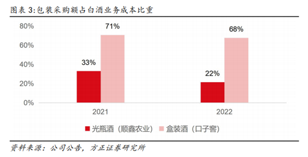 从成本结构看,光瓶酒摒弃了冗余的外观设计,包材成本占比更低,同价位的光瓶酒往往更具成本优势,节省的成本可用于品质升级和渠道让利以提升竞争优势。