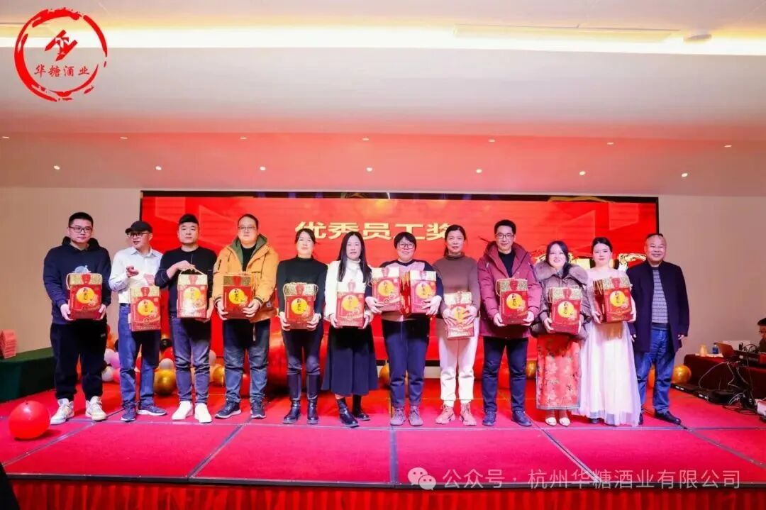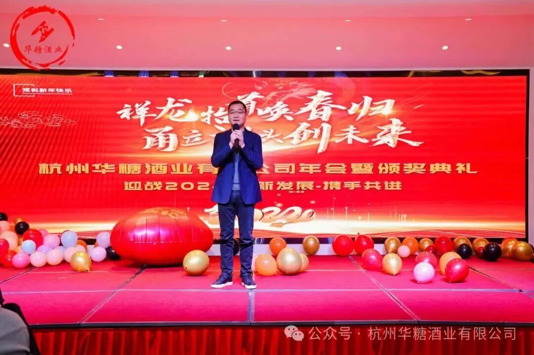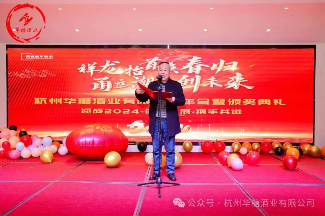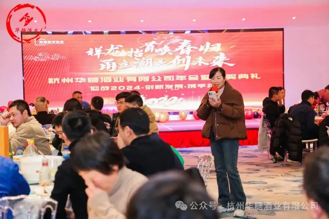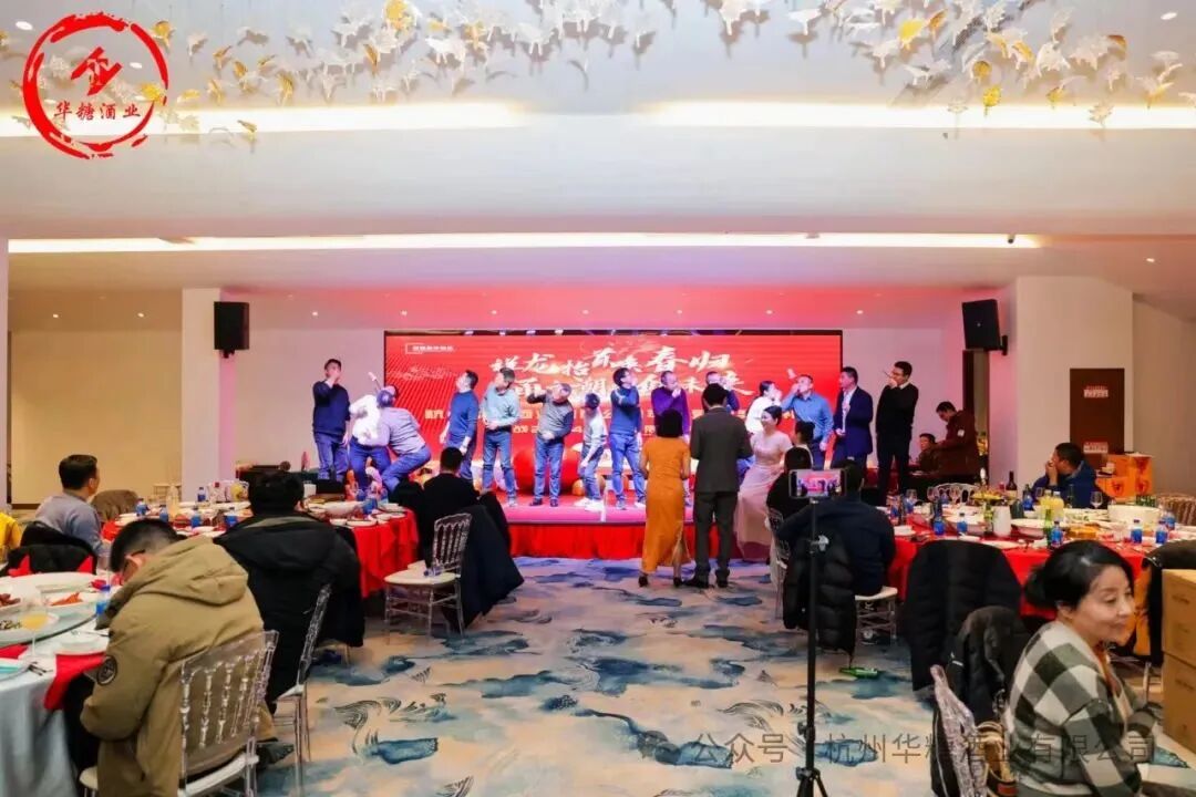 杭州华糖酒业有限公司全体同仁,及合作厂方代表欢聚一堂,于2024年1月26日晚举办年会庆典,颁发优秀奖项,分享发展喜悦,展望未来前景。
