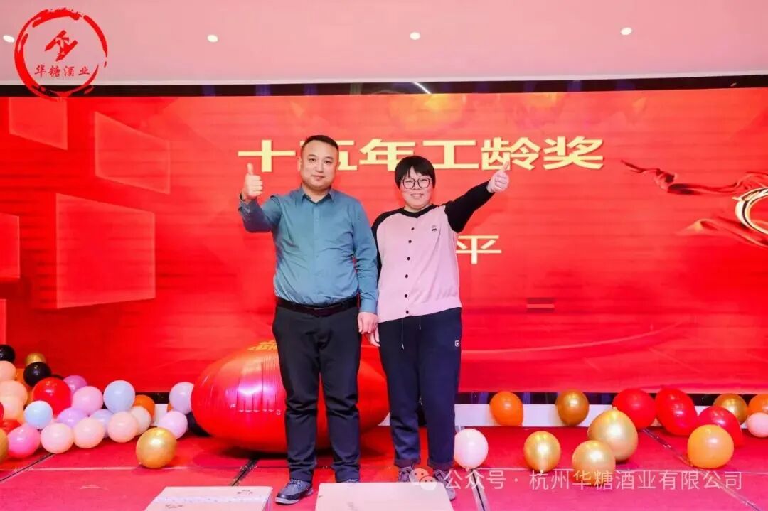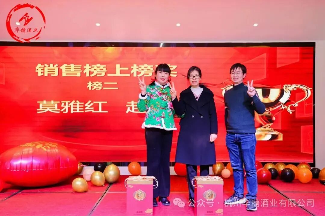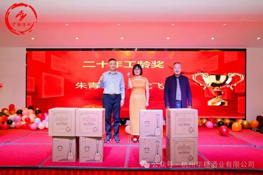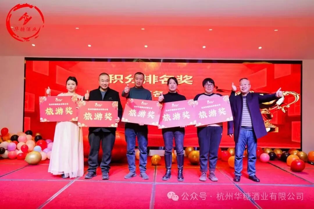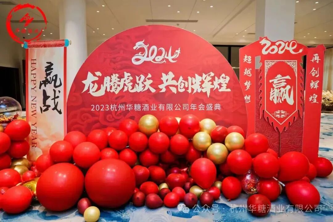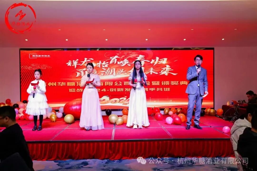 杭州华糖酒业有限公司全体同仁,及合作厂方代表欢聚一堂,于2024年1月26日晚举办年会庆典,颁发优秀奖项,分享发展喜悦,展望未来前景。