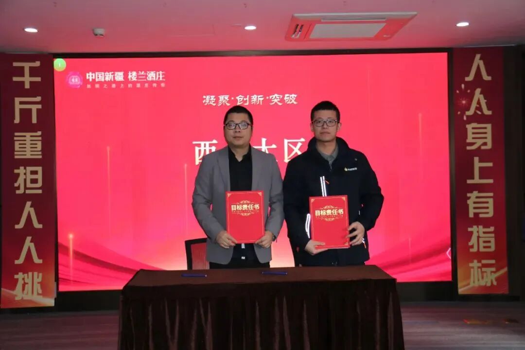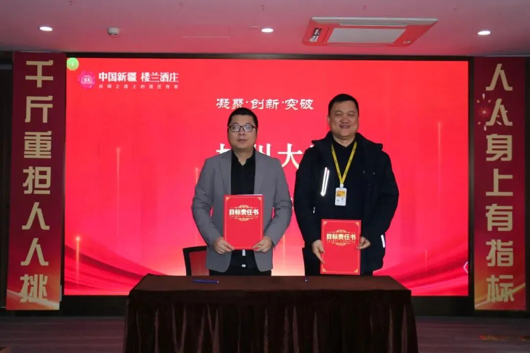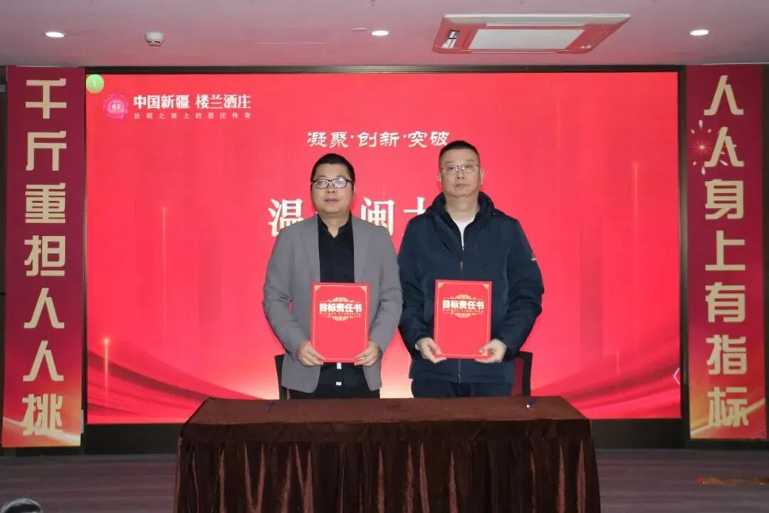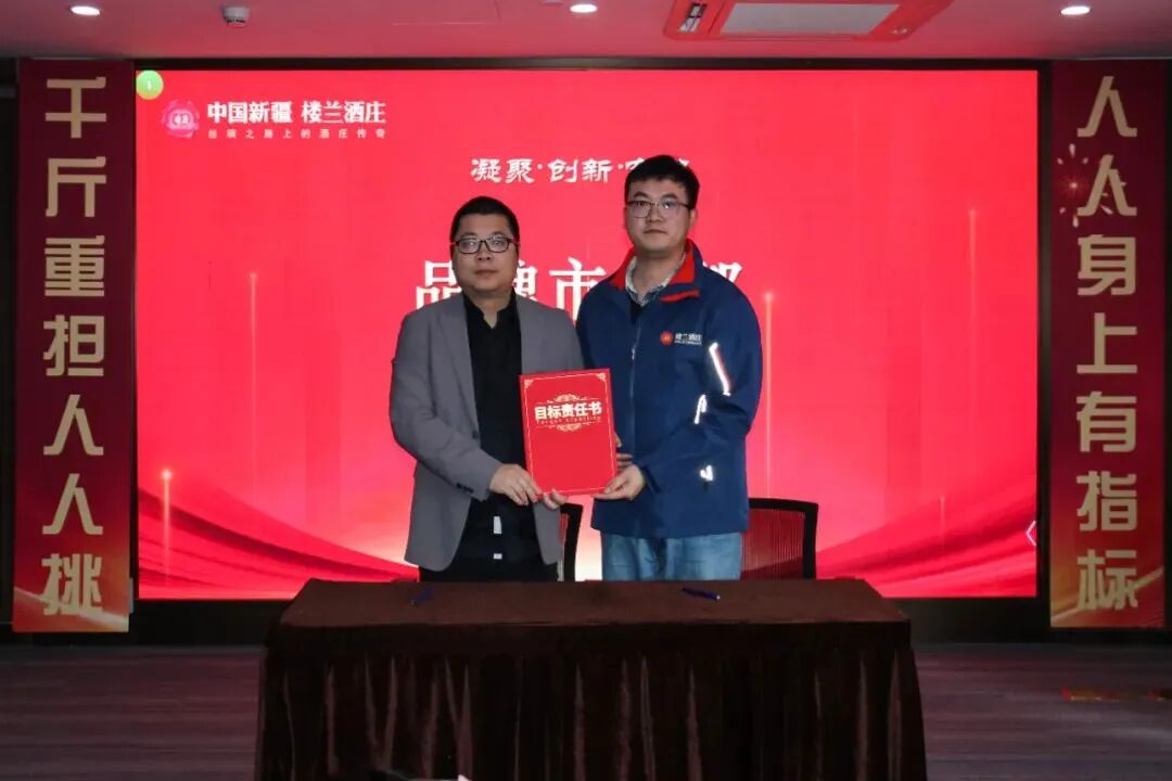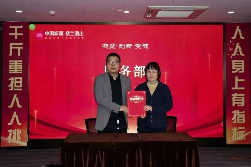 在商源集团总裁助理、楼兰销售公司总经理边旭明边总的见证下,各职能部门、销售大区负责人走上签署席,郑重地签下2024年度工作目标责任书。这是楼兰葡萄酒期待收到的成绩单和接下来一段时间里奋斗的目标方向。各销售大区和职能部门签署了目标责任书,立下了‘军令状’,既深感责任在身,更感到信心满怀。