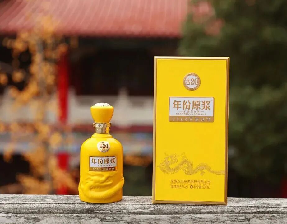 |古井贡年份原浆古20瓶身流畅贵气,色泽明艳雍容,颇有古代“御用”之风范。图源/古井贡酒