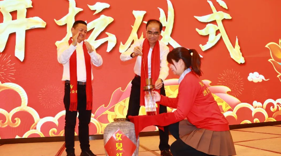 晚宴开始前,还举行了隆重的开坛仪式,胡志明董事长与项永春董事长共同开启了一坛珍藏的女儿红老酒,用最隆重的方式向与会嘉宾表示最真诚的祝福,将会场气氛推向高潮。