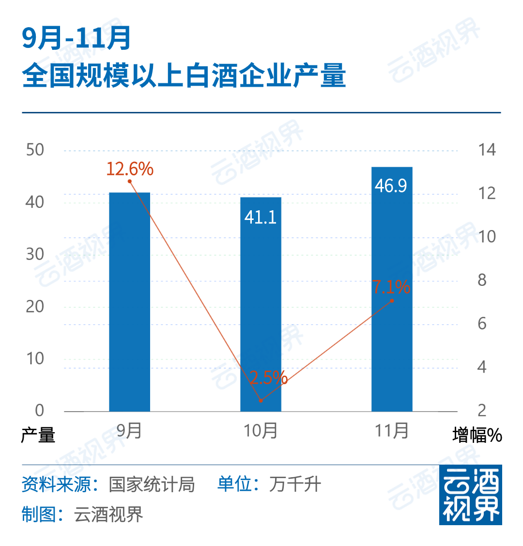 按照2022年规上白酒企业数量进一步缩减至963家来看,2023年9-11月白酒行业呈现出的产量增长,大部分是由头部企业完成的,白酒行业集中度还在提升。
