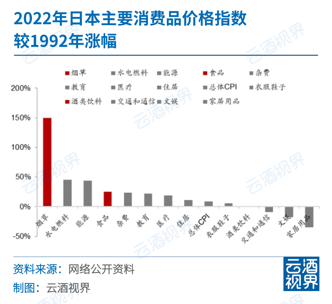 有观点以日本为例进行分析:“从日本近30年的经验来看,烟草、食品等刚需产品价格依旧占据优势”。