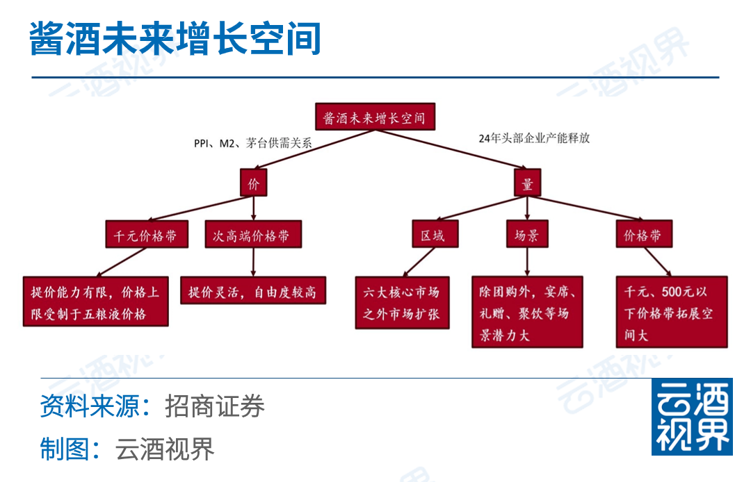 招商证券分析,下一轮酱酒周期演绎不再是单纯高价位团购需求带来的扩张,而是全价位、全需求的综合竞争。细分量价,酱酒价格仍将跟随茅台的脚步,在行业景气期拥有较强的提价能力。