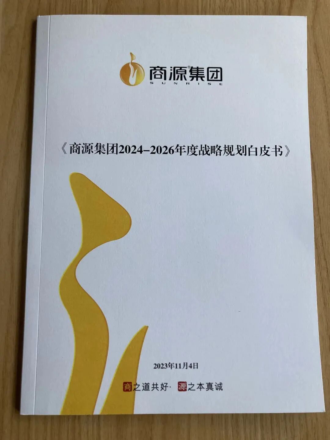 商源集团朱跃明董事长在干部会议上发布《2024-2026年度战略白皮书》,战略白皮书是商源人向科学管理要效益的具体体现,本次发布的战略白皮书是商源集团第二本战略白皮书。第一本战略白皮书的相关目标和策略均取得了良好效果,未来三年商源集团将秉承经静纬动、行稳致远的工作理念,按战略白皮书的指引向“百亿商源”的目标坚定前进。