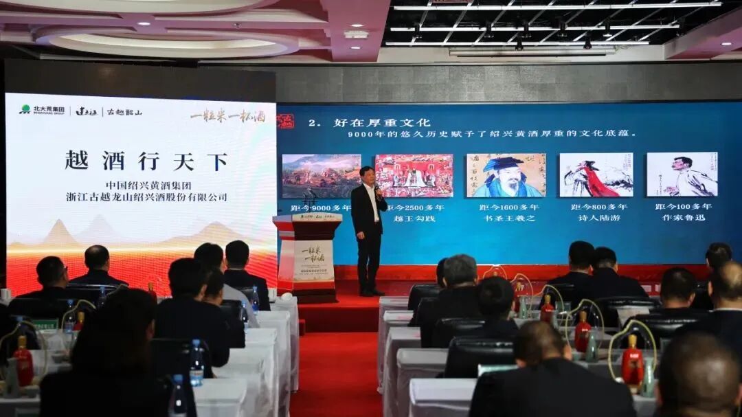 随后,古越龙山副总经理刘剑推介发布的新品“锦秀三江”绍兴黄酒。这款新品用来自建三江优质的糯米为原料,采用传统的绍兴黄酒酿造技艺,由国家级酿酒大师匠心打造,见证越酒再行天下,续写合作再创辉煌。