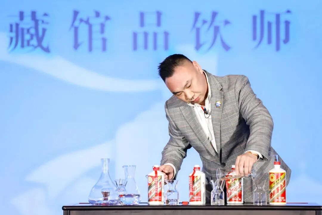 在不久前举行的茅台品藏家盛冬联谊会(第四季)上,茅台品藏馆(017号)负责人、配比品饮师斯舰东,现场展示了冬季配比品饮款“冬暖阳”的勾调过程: