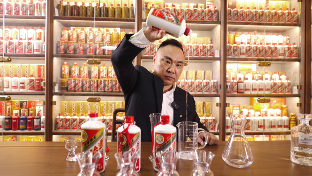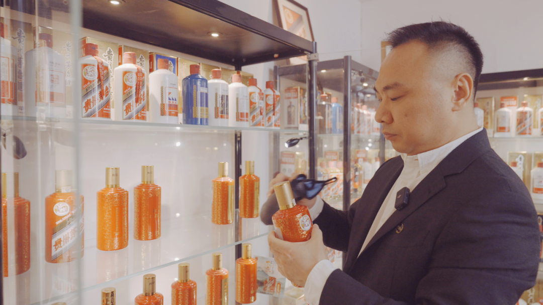 配比前,斯舰东会再次检查老酒存储情况,极少数老酒在流转过程中会有细微的瓶身裂痕,导致杂质进入酒体或产生异味。对于斯舰东来说,品质和口感是服务的关键,因此茅台品藏馆从收酒、存储到出售,全流程都严格把控。