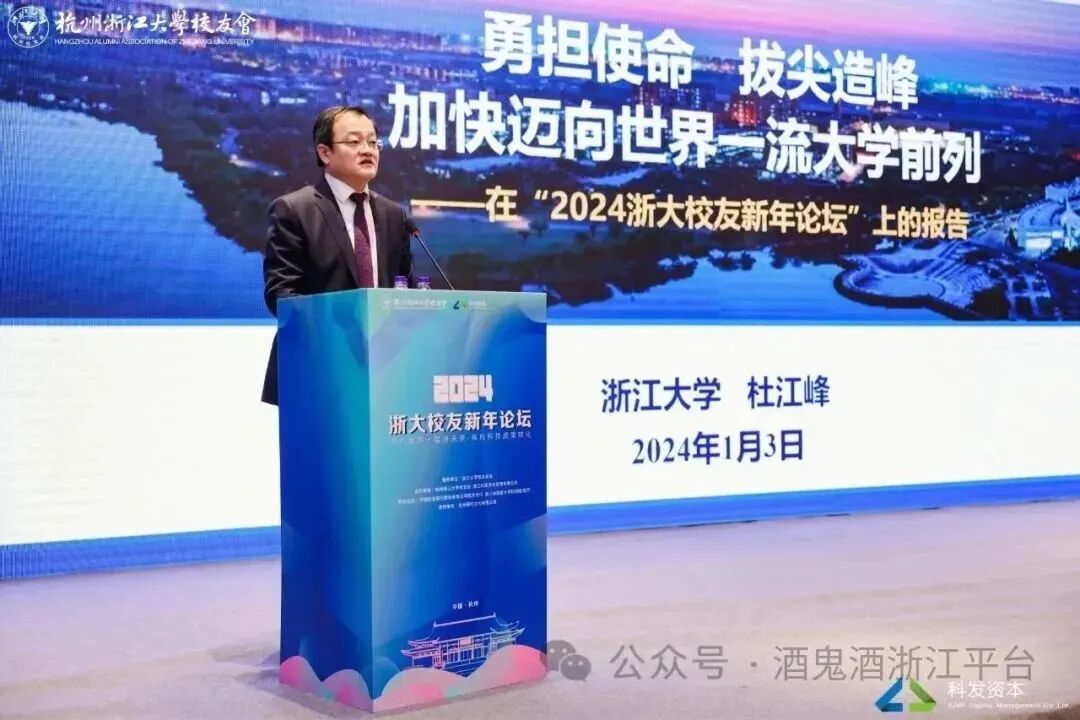 1月3日下午,2024浙大校友新年论坛在杭州隆重举行。本次论坛是在浙江大学校友总会的指导下举办的,百余位来自各行各业的知名浙大校友齐聚论坛,围绕“科创激荡,智启未来—高校科技成果转化”的主题,共同探讨。
