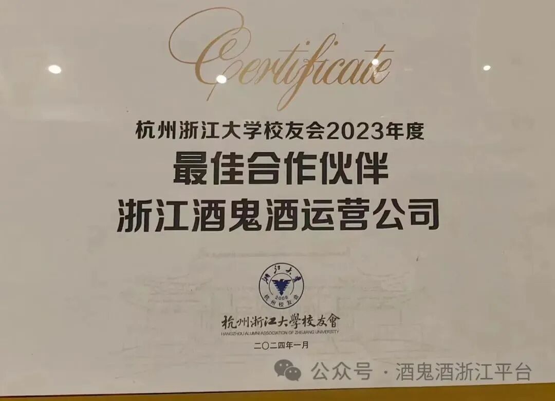 举一反三酒鬼酒浙江公司荣获2023年浙大校友最佳合作伙伴——2024浙大校友新年...