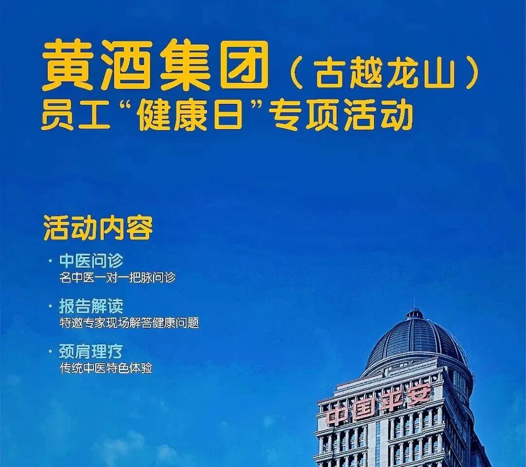冬至,为关爱员工生活,增强员工身心健康,提高员工工作效率和生活质量,黄酒集团(古越龙山)工会、妇联、团委联合平安养老保险公司开展员工“健康日”活动。活动特邀邵逸夫医院、震元堂中医馆的中西医专家上门为员工进行体检报告解读、中医一对一问诊等多项健康管理服务。