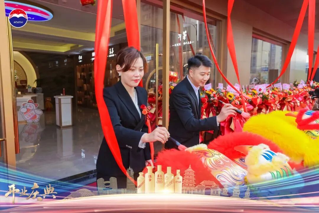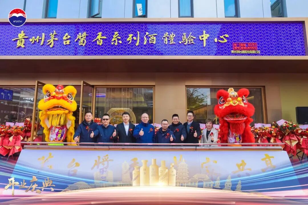 在现场嘉宾的倒数声中,徐斌毅携主礼嘉宾共同为贵州茅台酱香系列酒体验中心开业进行剪彩和揭幕,鲜花绽放、礼炮齐鸣,祝贺体验中心开业大吉。