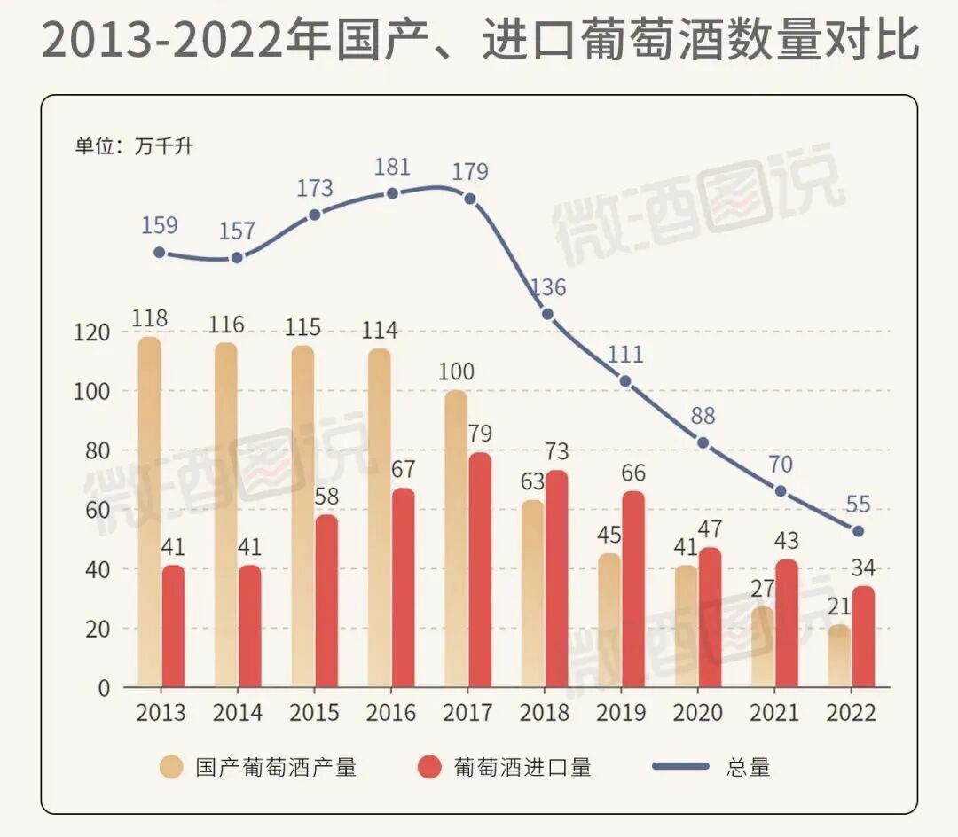 单纯从数据看,国产葡萄酒已退回到20年前的水平,进口葡萄酒也退居二线,进口额已经不及进口烈酒。