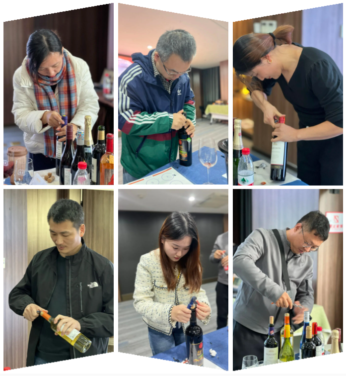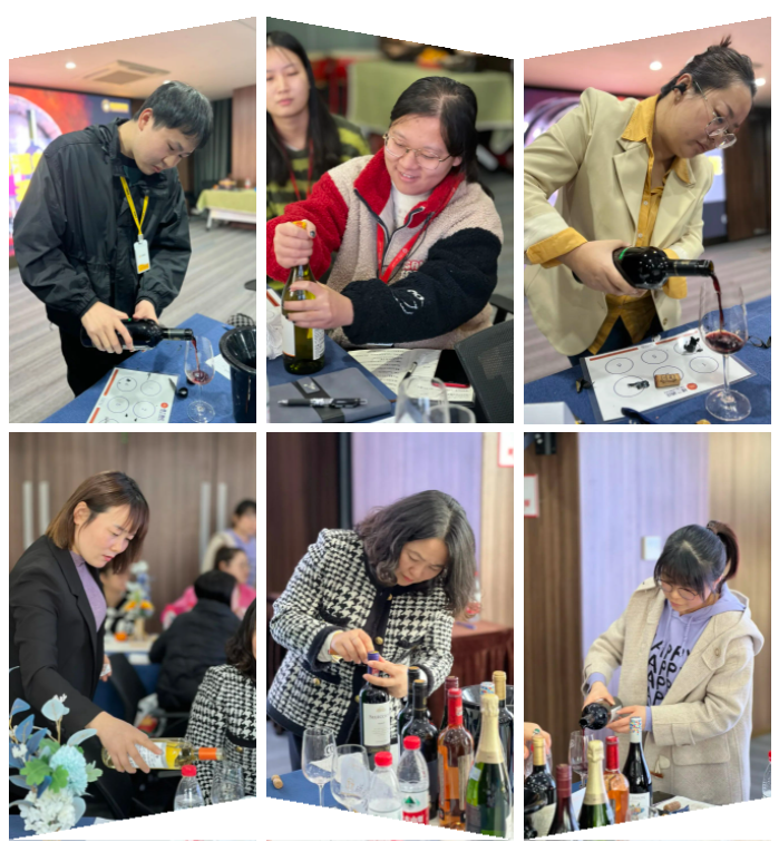 “纸上得来终觉浅,绝知此事要躬行。”——葡萄酒运用到日常生活和工作中,首先要掌握基础的品鉴能力,学员们尝试运用专业的评价维度,练习如何品鉴一款酒;其次要掌握侍酒礼仪和开瓶倒酒的技巧,学员们在课堂上也进行了充分的锻炼。