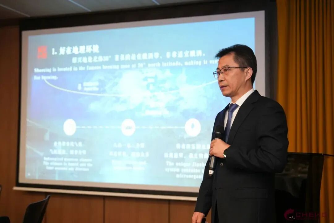 浙江古越龙山绍兴酒股份有限公司总经理徐东良在致辞中向嘉宾们分享了绍兴黄酒的历史。他表示,黄酒历史悠久,是中国国粹,其中以绍兴黄酒为最佳代表,从1915年旧金山博览会至今,黄酒从未停下走向世界的脚步,期待以此为契机来为古越龙山在英国的合作搭建更广阔的平台,不断探索中国黄酒与世界对话的新高度。