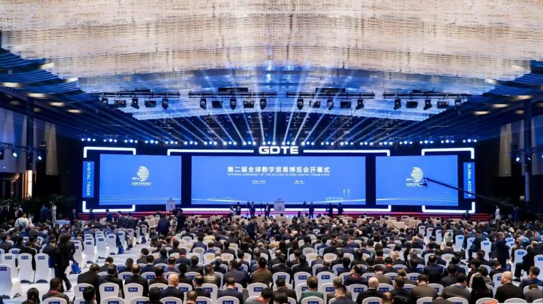 11月23日,第二届全国数字贸易博览会在杭州国际会展中心拉开帷幕。国家副主席韩正出席开幕式,宣读习近平主席贺信并致辞。