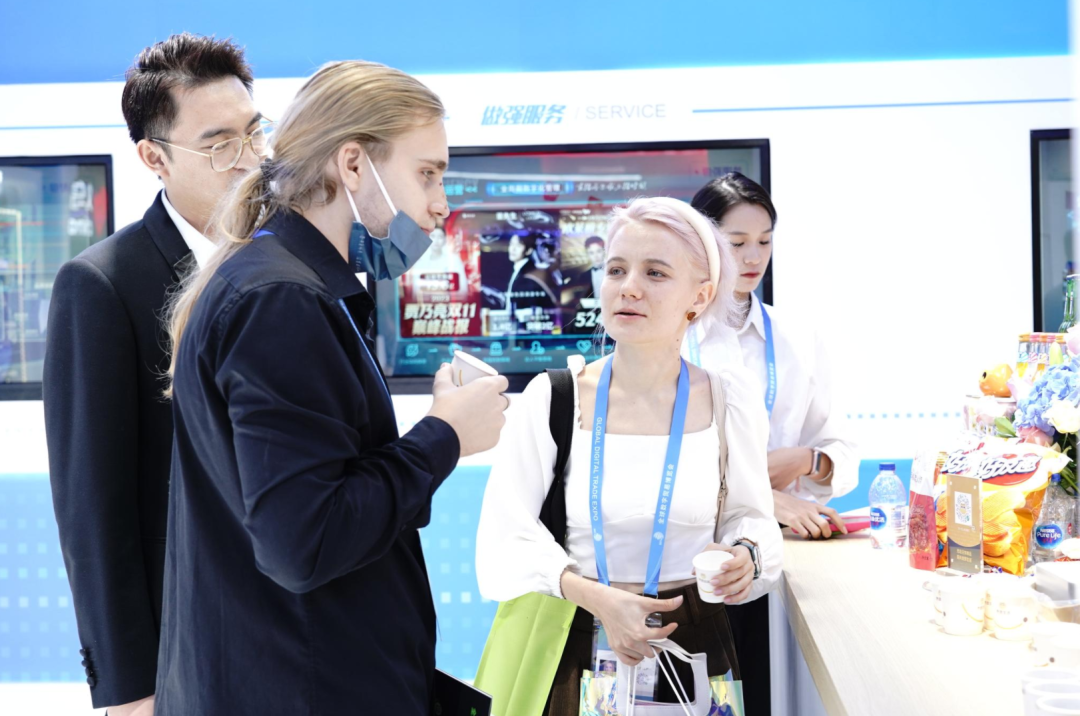 “数字员工云小千讲解新消费产业生态”的新颖形式和迷你版的“热选生活”体验场景也吸引了不少参展观众,加上多点位的互动交流,展位现场人头攒动、络绎不绝。