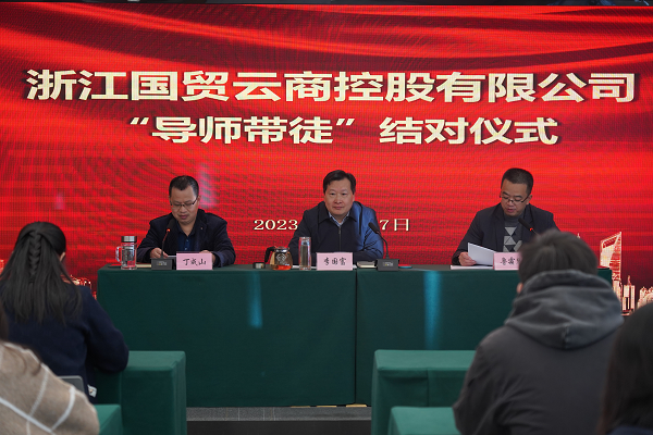 为完善年轻人才培育机制,帮助新进年轻员工更快地完成角色转化、适应岗位要求,建立资深骨干与年轻员工的带教机制,促进内部知识传递和技能传承,打造高绩效团队,11月17日上午,浙江国贸云商控股有限公司举办“导师带徒”结对仪式。国贸云商党委副书记、总经理李国富、党委副书记、纪委书记、工会主席鲁霜慧、副总经理周游出席会议。2022年以来新入职年轻员工及专业导师、成长导师、系统实操指导老师参加仪式。会议由人力资源部经理丁成山主持。
