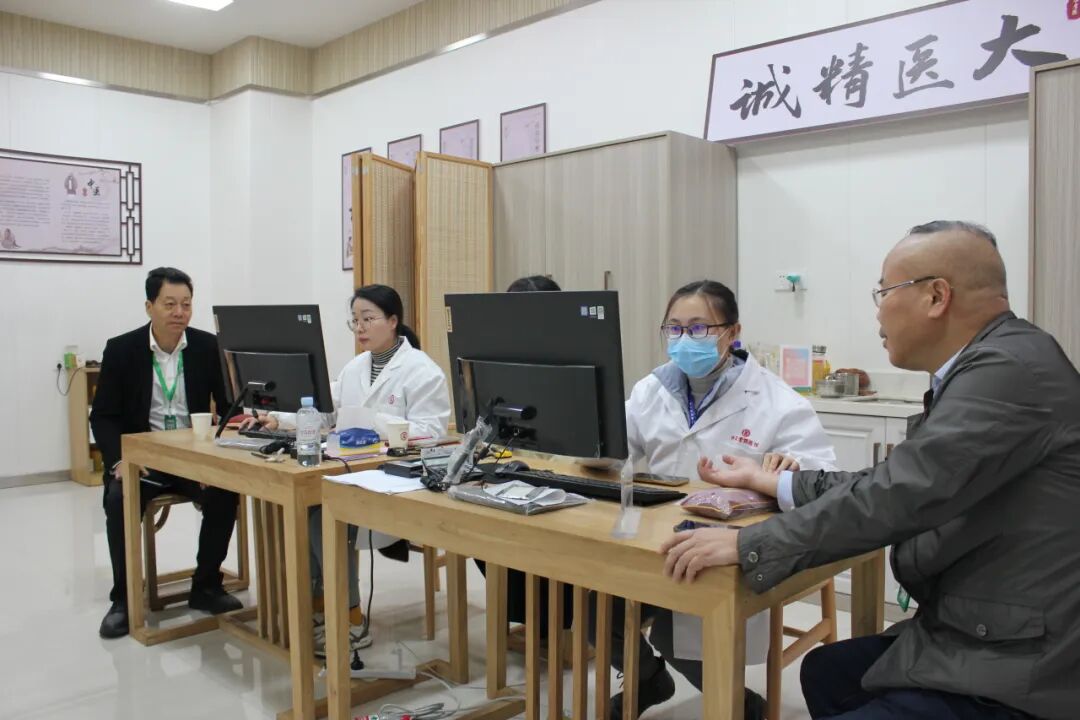 ▲持正堂国医馆内,专业的医生正在为考察组一行问诊把脉