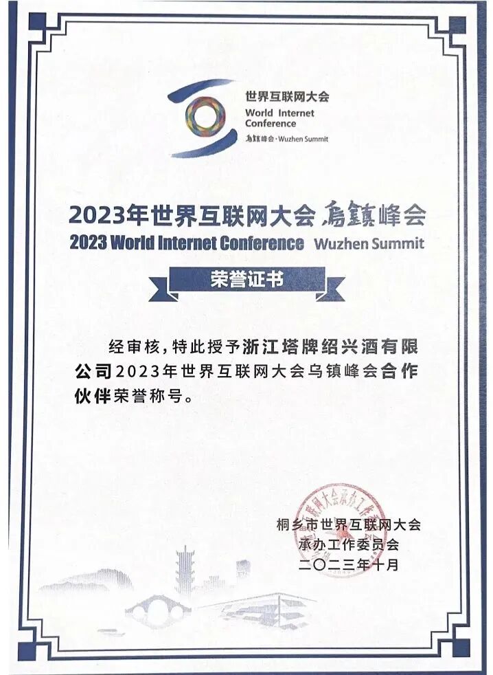 塔牌绍兴酒已第三次步入乌镇峰会,成为2023年世界互联网大会乌镇峰会合作伙伴。