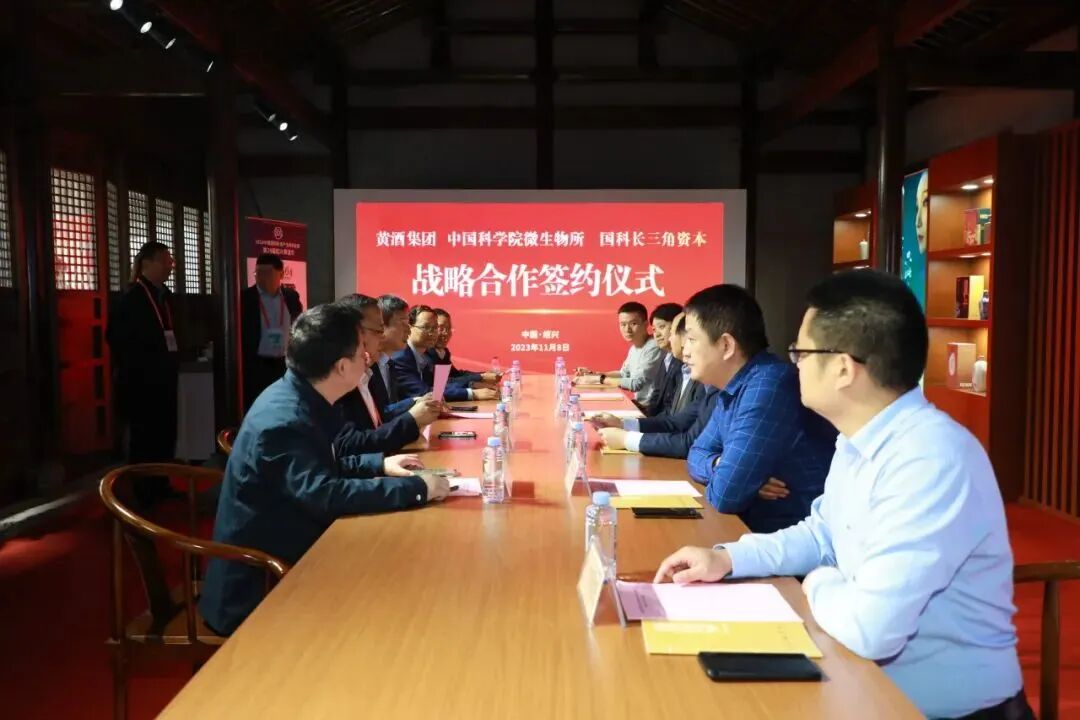 11月8日上午,2023中国国际黄酒产业博览会暨第29届绍兴黄酒节在东浦黄酒小镇开幕。开幕式后,在黄酒小镇古越龙山微醺舍里,中国绍兴黄酒集团有限公司党委副书记徐东良、中国科学院微生物研究所研究员白逢彦、国科长三角资本管理有限公司副总经理王响亮分别代表各自公司共同签署了战略合作框架协议。