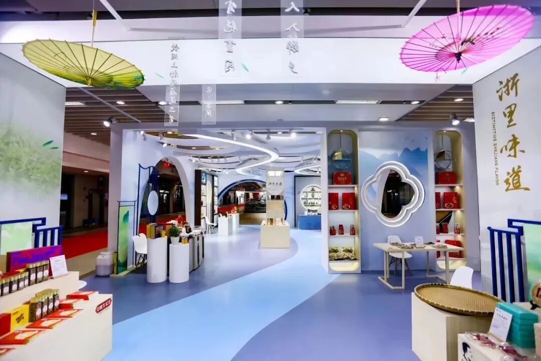 本届浙江人文交流展区还以“灵动浙江”为主题,打造浙江非物质文化遗产暨中华老字号展区,汇集60余家非遗企业参与人文交流活动,展示面积达600多平方米,融入风雅精致宋韵文化的特色展台,沉稳静谧的蓝色调、亮眼跃动的流线型灯带、外屏上灵动变幻的水墨画等别出心裁的设计与集合创新技术、古老传承技艺的展品,径山茶宴、杭罗织造技艺、龙泉青瓷烧制技艺、海宁皮影戏4项世界级非遗,20项国家级非遗和15家中华老字号企业进行展示和现场演出,多角度呈现浙江文化特征,共同呈现出“诗画江南”的生态之美、人文气质,以及“活力浙江”的崭新气象、蓬勃姿态,促进浙江文化世界共享。