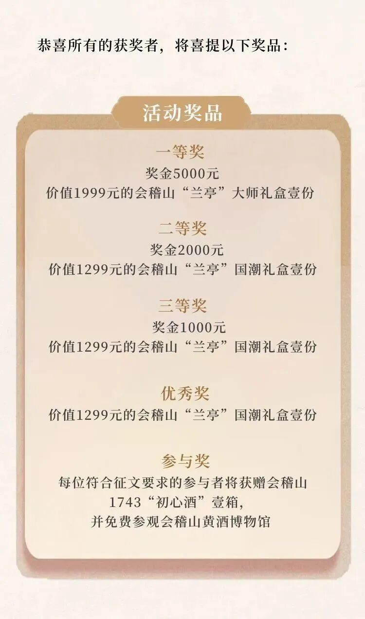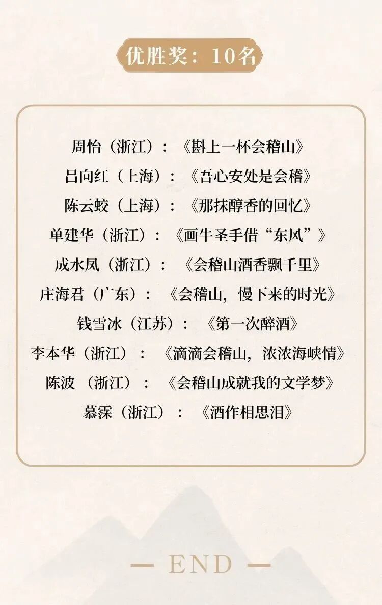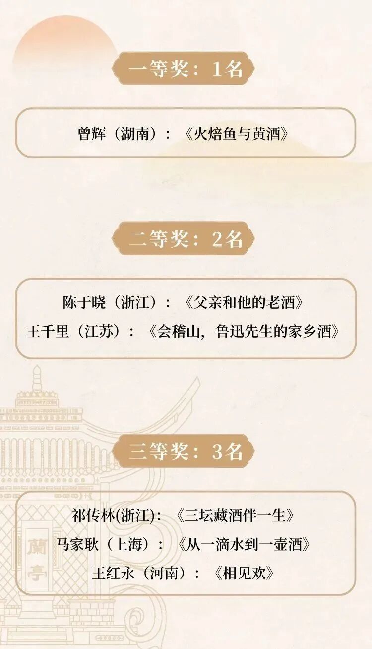 据悉,会稽山将邀请所有获奖人员,择时举行颁奖活动,请大家关注会稽山绍兴酒公众号信息。