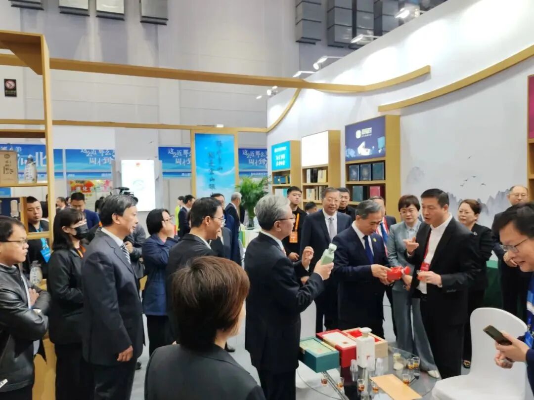 参展期间,任鸿斌会长等领导、嘉宾,到古越龙山展位莅临指导。徐东良总经理向领导一行介绍了古越龙山近几年的发展情况,并推介“只此青玉”等高端产品。任鸿斌会长对企业的发展战略表示肯定,并指出古越龙山“只此青玉”是性价比高的产品。