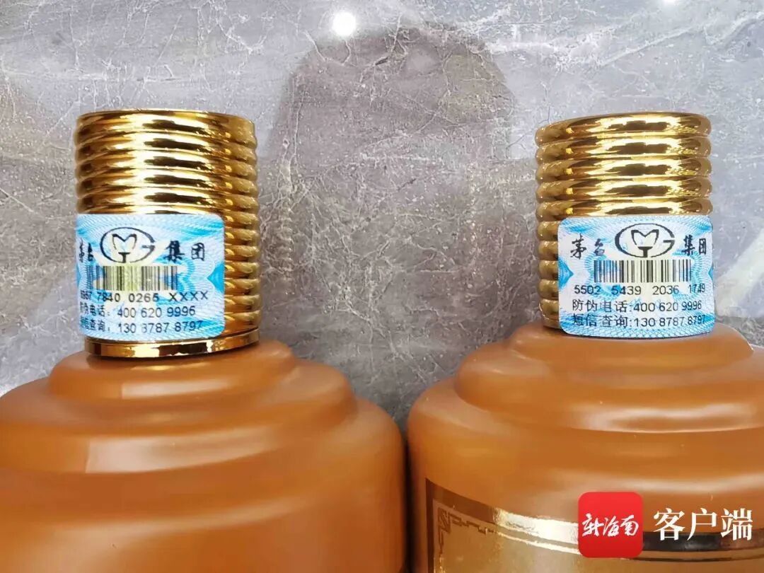 打假办工作人员向记者介绍,除了执法人员上述发现的差异外,真品“白金酱酒”酒瓶上的防伪标上的防伪码应该是全数字,但是在该酒行内发现的这一批白酒的防伪码则是“数字+XXXX”,根本无法查询到。