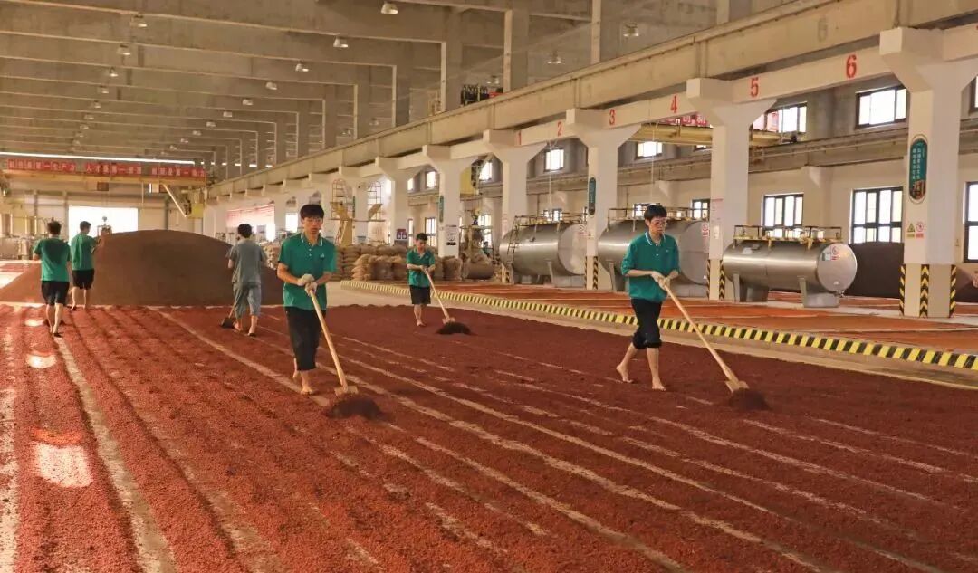 随后,汪地强一行来到制酒十车间1#生产厂房。晾堂上,员工们手中的铁锨上下翻飞,红粮飞舞,水汽蒸腾,粮香扑鼻。看到员工们精神饱满、干劲十足,汪地强十分欣慰,并对他们的辛勤付出表示感谢。他强调,车间管理人员要加强工艺管理和现场管理,锻造出一支素质高、能力优、作风硬的生产队伍。员工要拿出十足的干劲,不断追求卓越品质和至臻技艺,展现习酒精益求精的工匠精神,为习酒事业添砖加瓦。