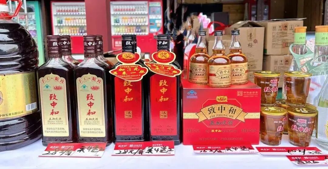 展会上,致中和带来了大家熟悉的五加皮酒、养生酒产品。