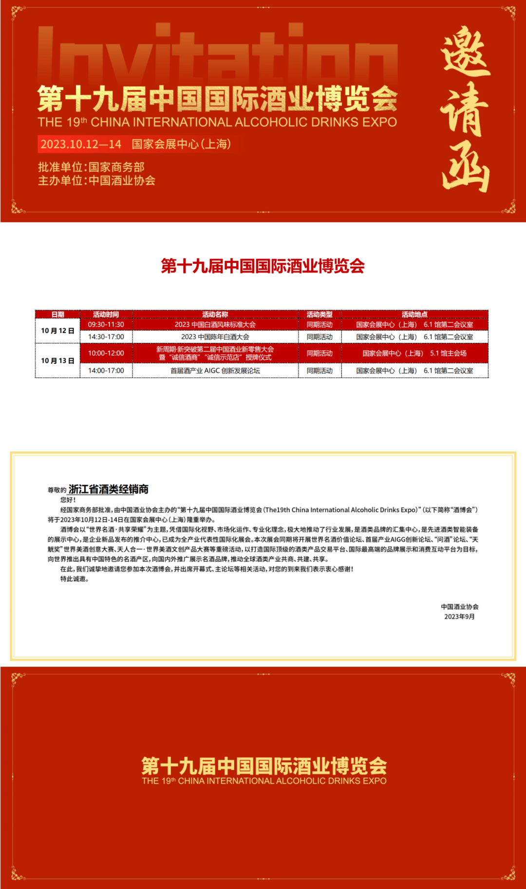 浙江省酒类流通协会关于组织参加第十九届中国国际酒业博览会的通知各地市分支机构、专...