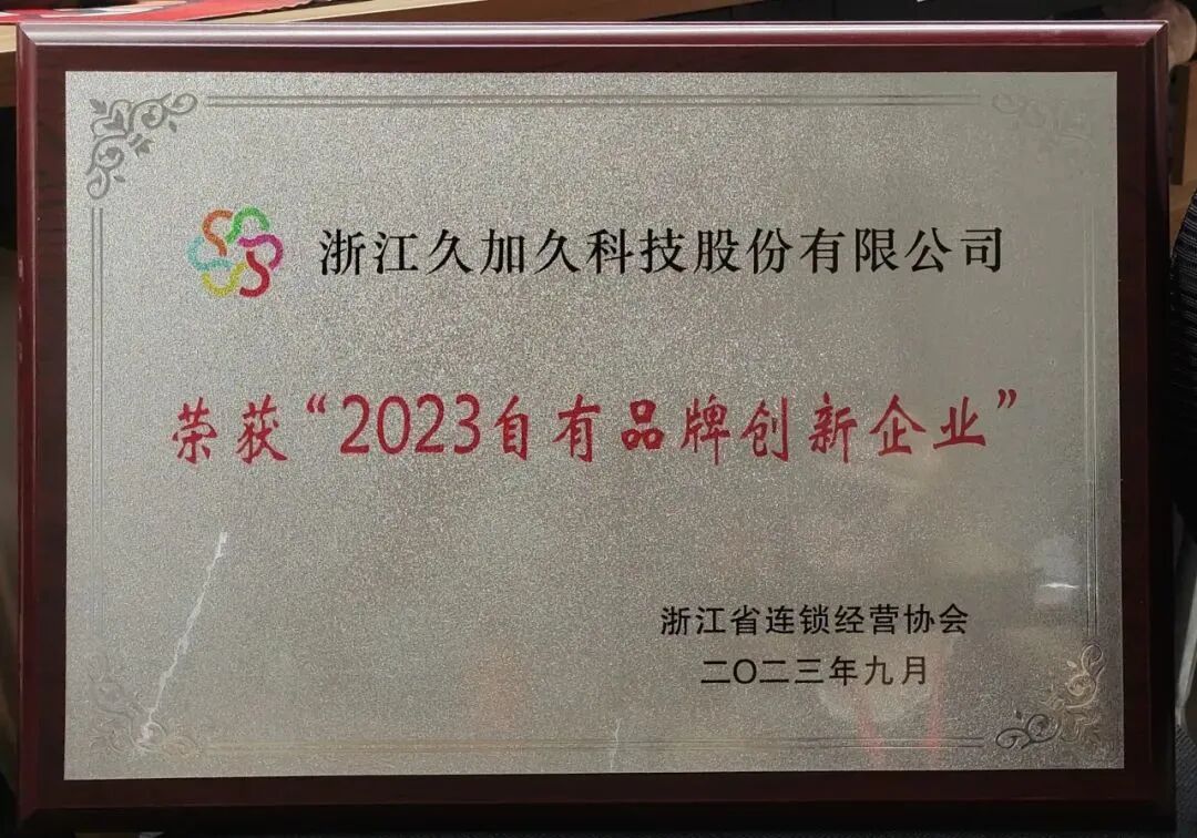 协会前期开展专项评选活动,通过协会组织评审和网上公示,层层筛选,峰会颁奖典礼现场,久加久科技喜获“2023自有品牌创新企业”、浙江省连锁业“2023优秀自有品牌”、2023最具成长力特许品牌”等多项殊荣。