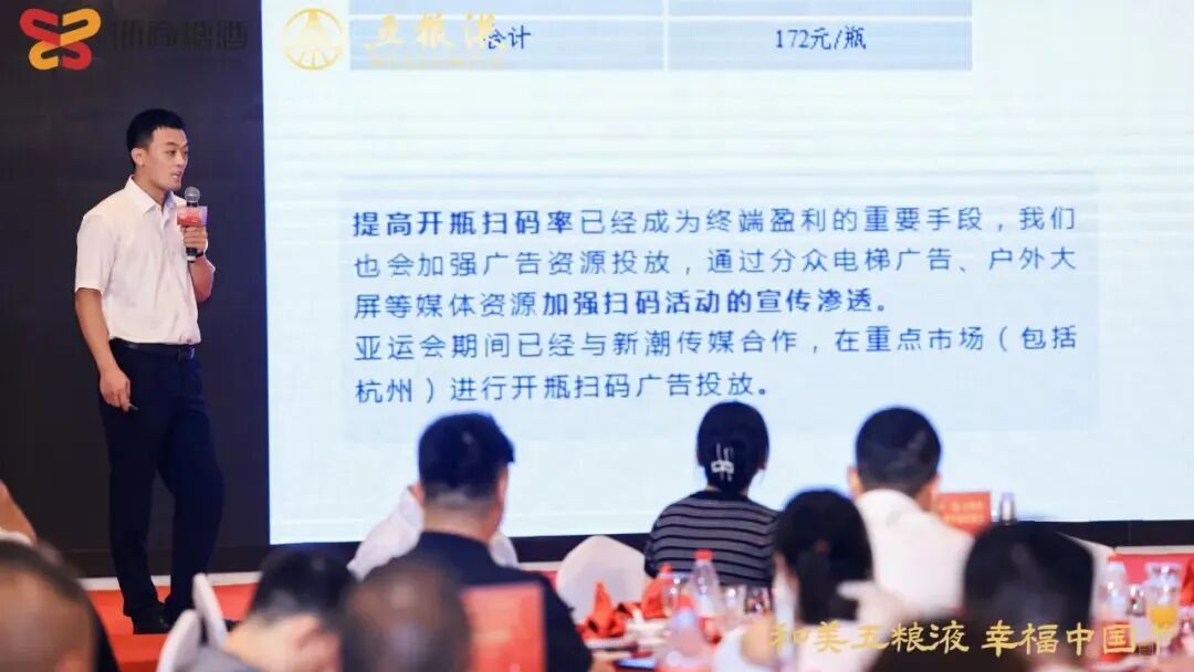 宜宾五粮液股份有限公司浙江大区杭州区域城市经理张腾做五粮液品牌终端宣贯。