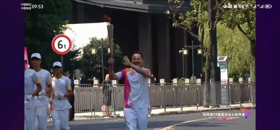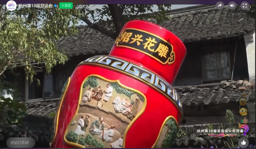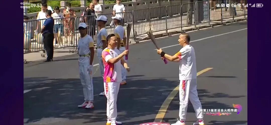 9月11日上午,杭州第19届亚运会火炬传递来到绍兴,全国人大代表、古越龙山质量技...
