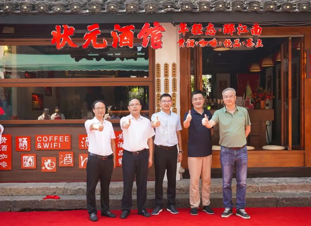 9月9日,绍兴市文化旅游集团有限公司党委委员、副总经理龚凌,浙江古越龙山绍兴酒股份有限公司副总经理徐岳正、新业态事业部部长徐永祥,状元红公司董事长李绍生,绍兴市龙胜酒业有限公司总经理屠国峰等领导嘉宾参加状元酒馆开业仪式。