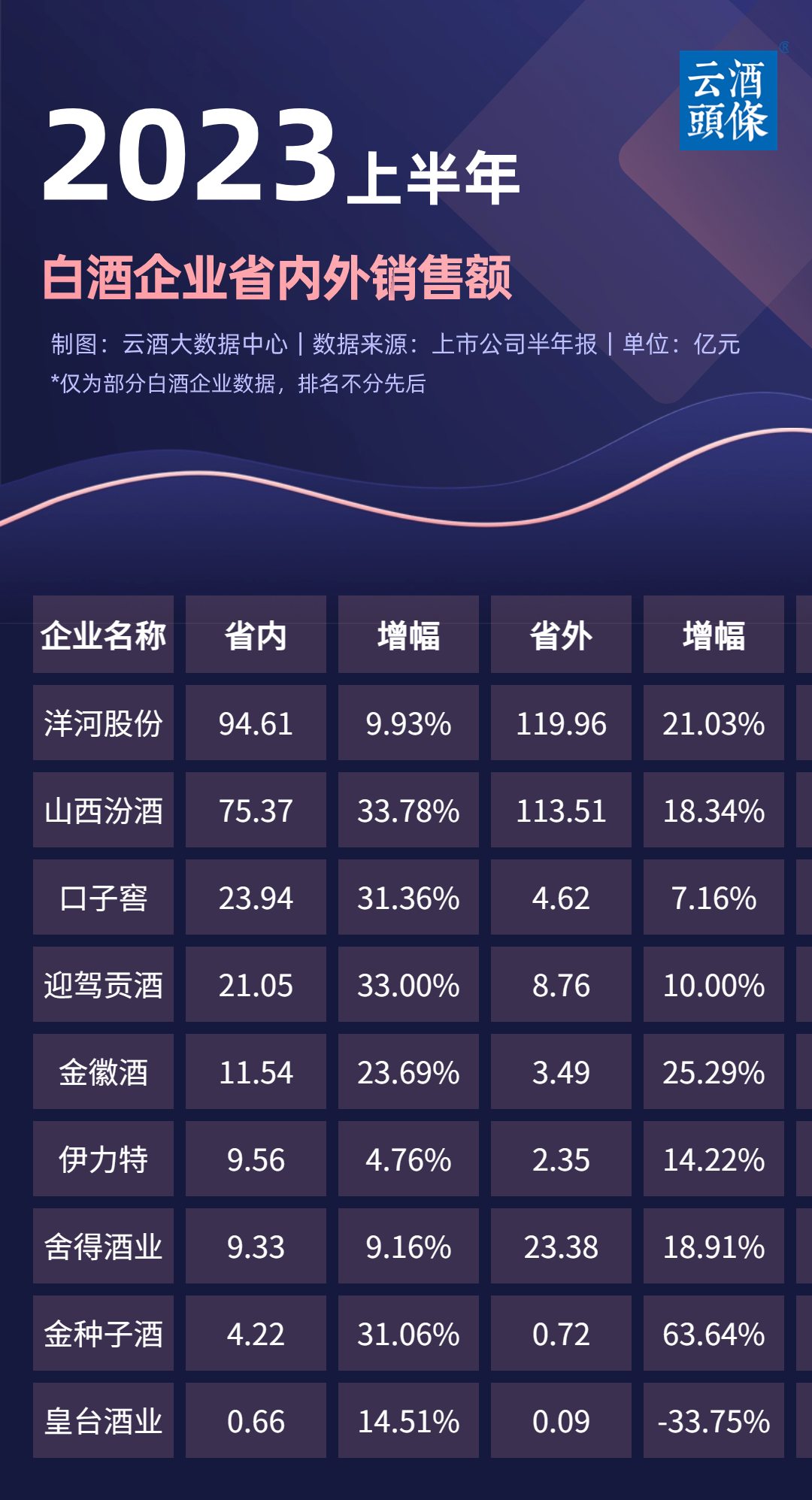 数据显示,报告期内,洋河股份省外市场共有经销商5476家,上半年增加了215家;省外销售额达到119.96亿元,同比增长21.03%。