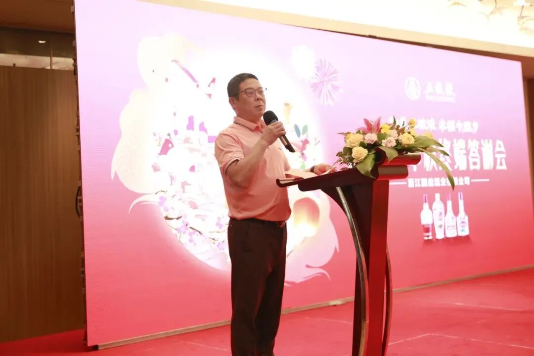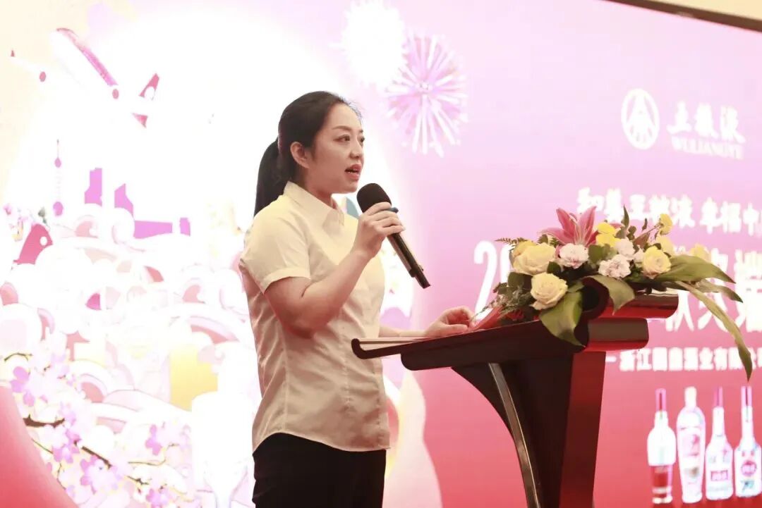 五粮液浙江营销大区浙南区域总经理税厚蓉致辞。她总结回顾金华市场2023年上半年五粮液营销工作取得的成绩,感谢国鼎酒业及终端商家的支持,并表示五粮液公司将持续赋能市场销售,实现厂商共赢。