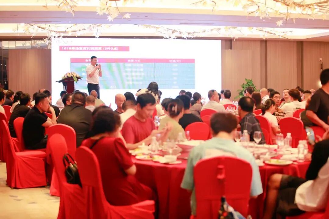 晚宴开始前,五粮液浙江营销大区浙南区域金华城市经理吉永利讲解终端星级评定规则、梳理终端权益,详细解读如何通过开瓶扫码、宴席推广获得星级点数、现金奖励。