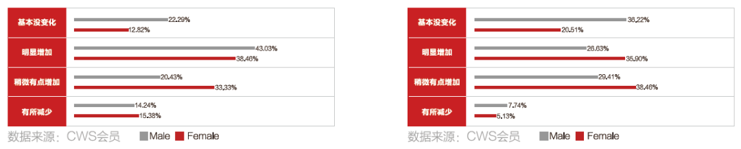 疫情影响下,饮酒人群的威士忌饮用量仍然在增长。根据调研结果,过去三年中43.03%的男性和38.46%的女性认为自己的威士忌饮用量有明显增加, 20.43%的男性和33.33% 的女性认为自己的威士忌饮用量稍有增加,只有14.24% 的男性和15.38%的女性认为自己的威士忌饮用量有减少。可以看到,威士忌在爱好者中的消费趋势是不断上扬的。