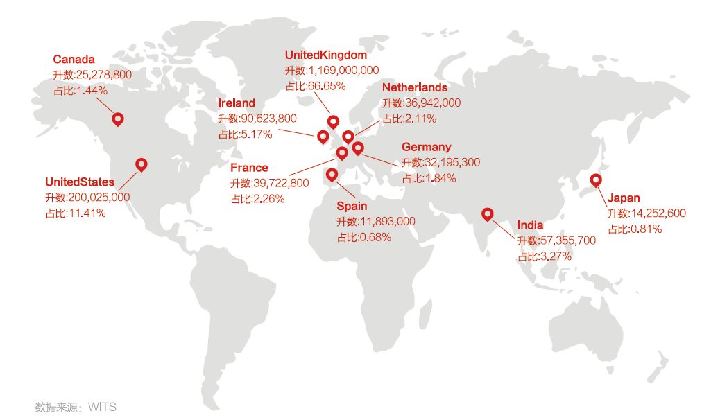 世界第三大威士忌出口国爱尔兰仅占中国进口量的1.00%, 而出口量世界排名第九的日本在中国进口量排序中位居第三。