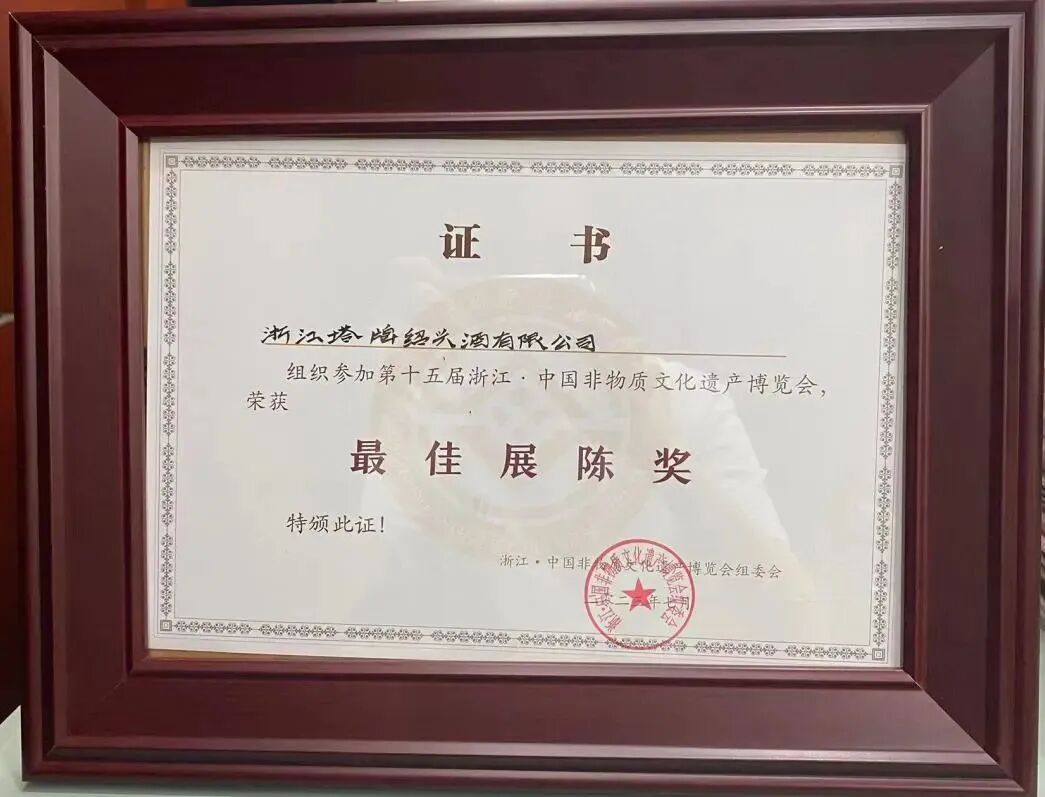 根据《浙江省文化和旅游厅关于举办第十五届浙江• 中国非物质文化遗产博览会的通知》的文件精神及本次博览会组委会评奖活动办法,按照公开、公平、公正的原则,经参展人员报名、当地文化和旅游主管部⻔推荐和专家评委会现场评审程序,最终从参展的单位中评选出13名最佳组织奖和16名最佳展陈奖,浙江塔牌绍兴酒有限公司荣获最佳展陈奖。