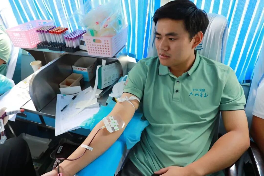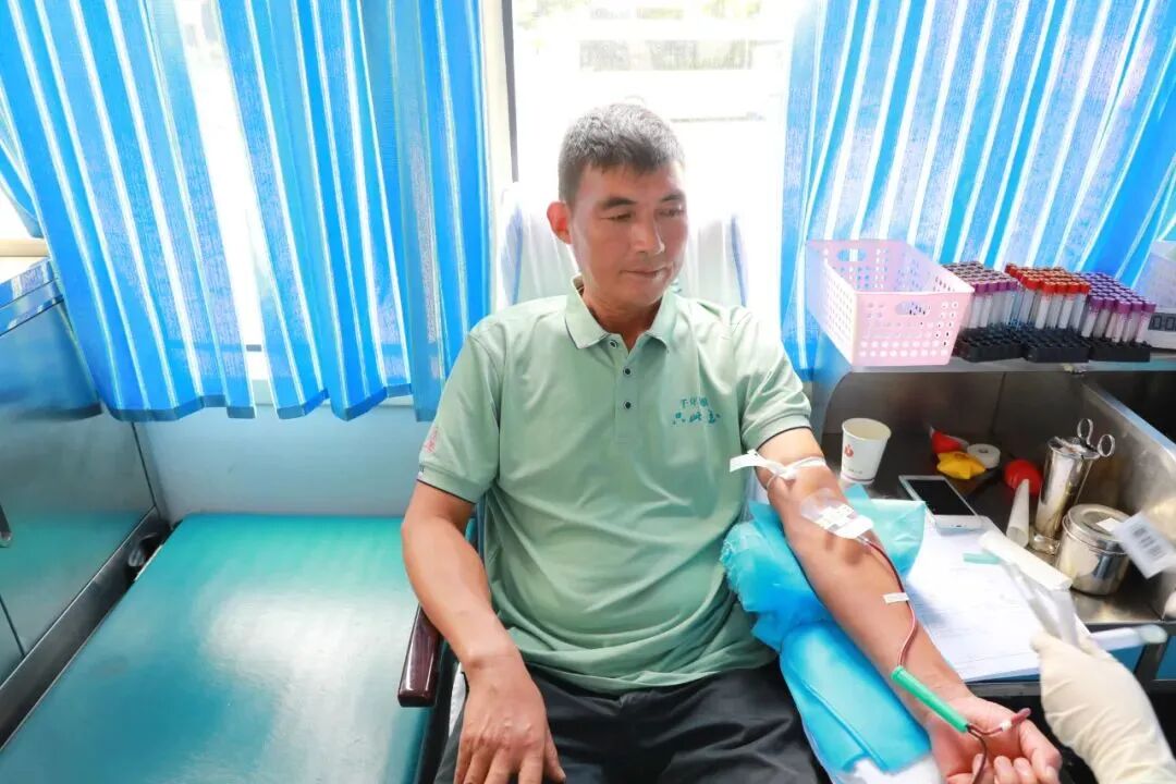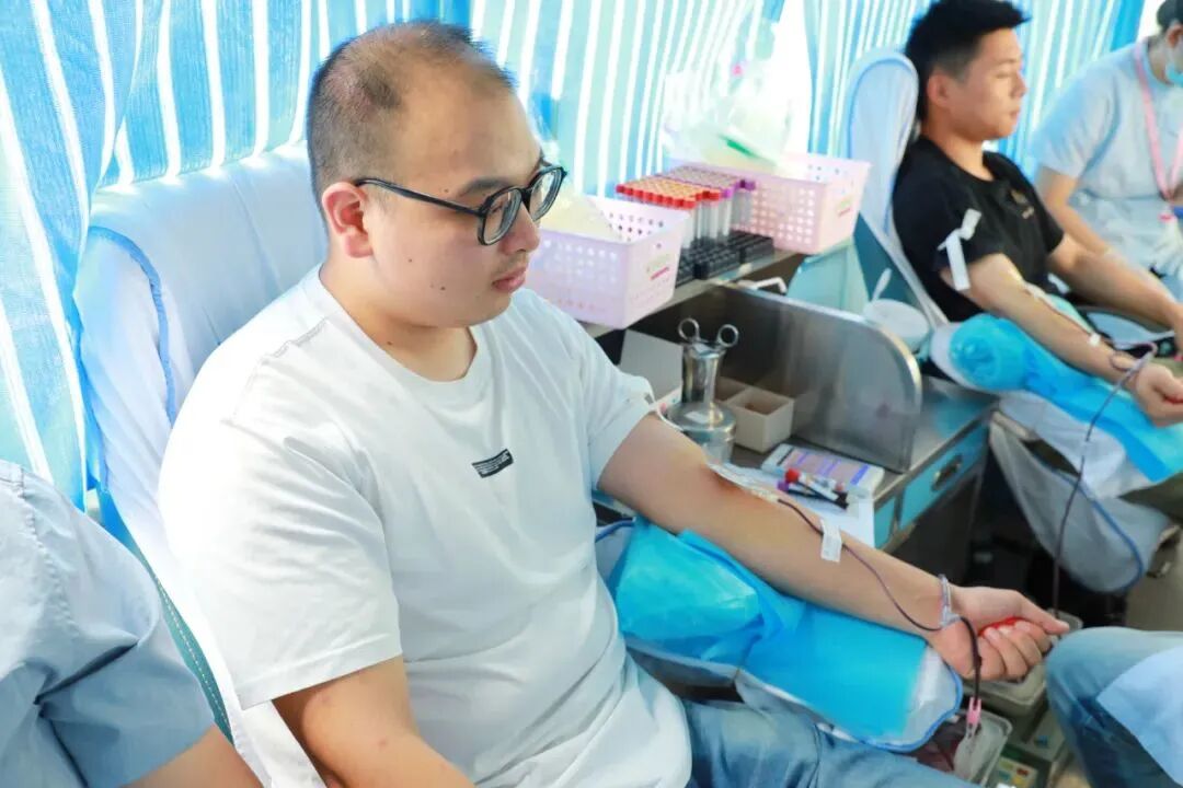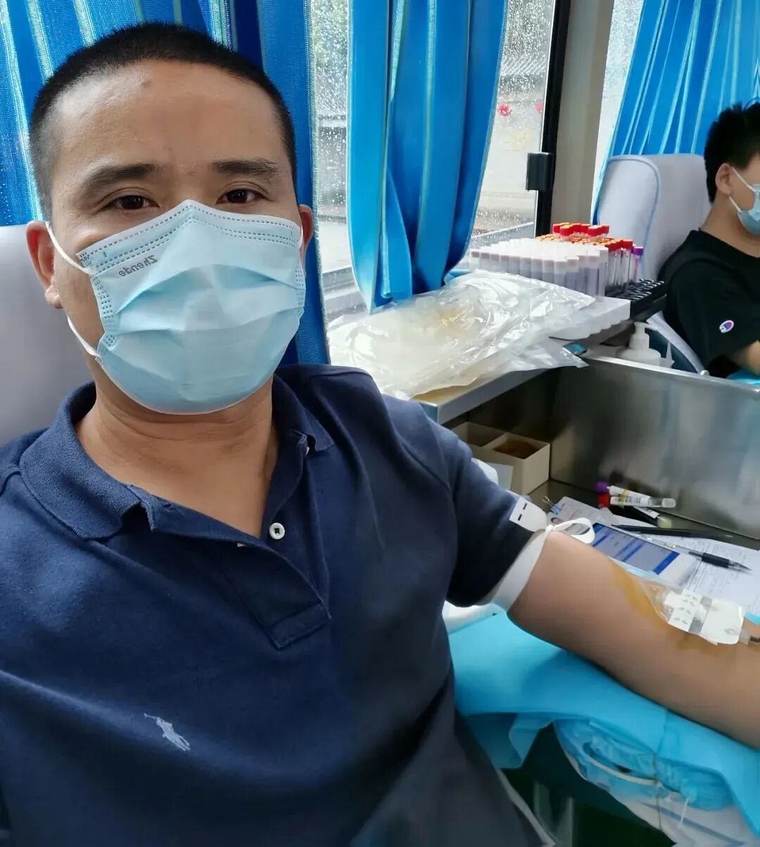 市场营销部部长钱峰始终发挥老党员的先锋模范作用,即便工作繁忙,也积极带领部门成员一起来献血。
