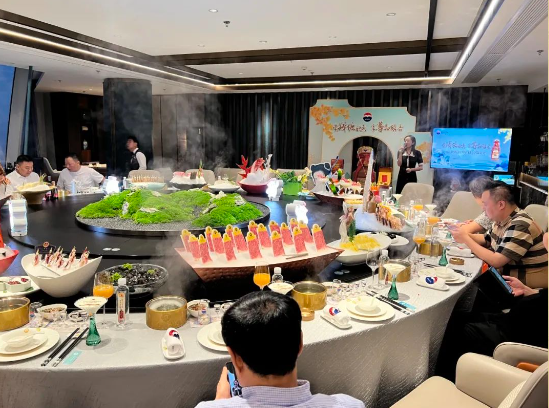 华灯初上,夜幕笼罩下的钱塘江星星点点,异常璀璨。人在景中,景随酒浓,茅粉们在杯觥交错间分享快乐,佳酿珍馐在唇齿间留下了秋天的第一抹记忆,更有浓浓酱香萦绕心中。大家品味尊品茅台酒“色、香、味、格”的同时,也垂直品鉴了彩釉珍品茅台、精品茅台以及普通飞天茅台,充分感受到不同品类茅台酒流淌千年的时间美学。华商糖酒以本次立秋活动为契机,彰显了茅台对中国传统节气文化的深刻理解,凝聚文化认同感,通过美的产品,美的影相,诠释美的内涵。