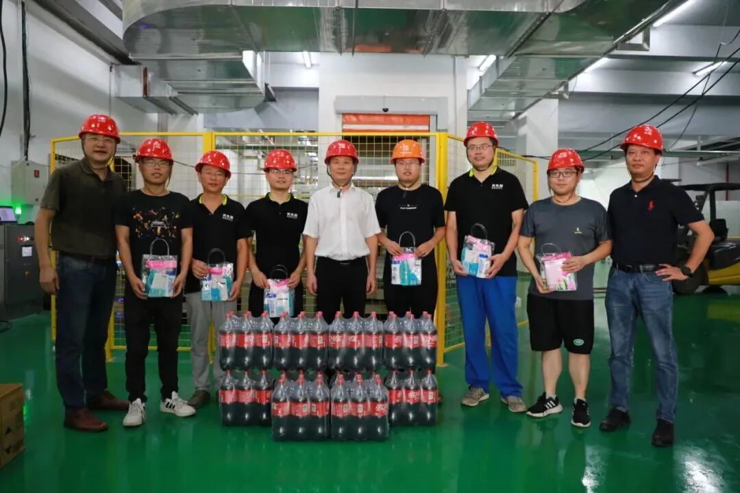 公司领导孙爱保、万龙来到黄酒产业园、古越龙山酿酒总厂慰问工作人员,为他们送上降温慰问品。