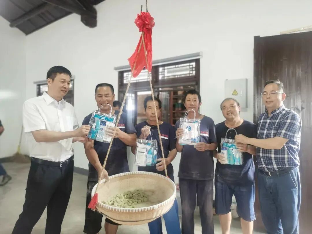 公司领导徐东良、徐岳正来到鉴湖公司,慰问一线员工,了解酒药制作进展。